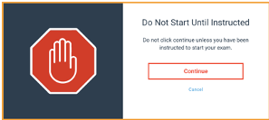 - STOP AND WAIT when the STOP SIGN appears. When instructed by your proctor, click ‘Continue’.